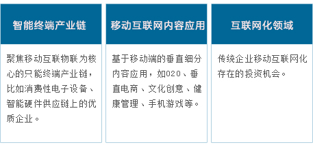 云創(chuàng)資本的投資領(lǐng)域主要集中在移動互聯(lián)產(chǎn)業(yè)(智能終端產(chǎn)業(yè)鏈、移動互聯(lián)內(nèi)容及應(yīng)用、傳統(tǒng)企業(yè)互聯(lián)網(wǎng)化領(lǐng)域),投資目標是成長型、創(chuàng)新型優(yōu)質(zhì)企業(yè)。